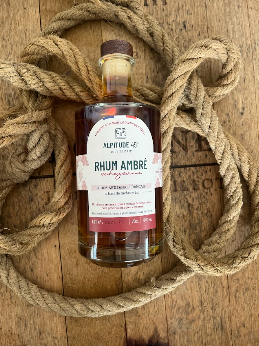 Ce rhum ambré d’exception est le fruit de l’affinage du rhum Alpitude 45 dans des contenants ayant accueilli un prestigieux vin rouge.