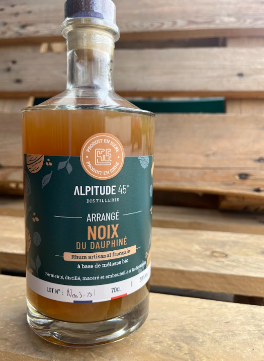 Notre arrangé à la noix est conçu à partir du rhum blanc Alpitude 45 et de cerneaux de noix du Dauphiné.